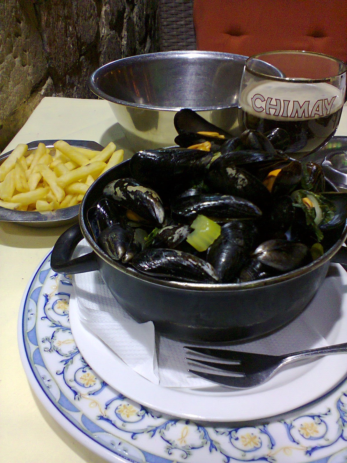 I would be remiss if I didn't mention the one thing that I really loved about Brussels...mussels. Mussels are one of my favorite foods and they are plentiful in Brussels. Food is expensive but really very good. I did happen to find a little restaurant off the Grand Place that actually had mussels, fries and beer (Chimay Blu is my favorite) for only 10 euros!